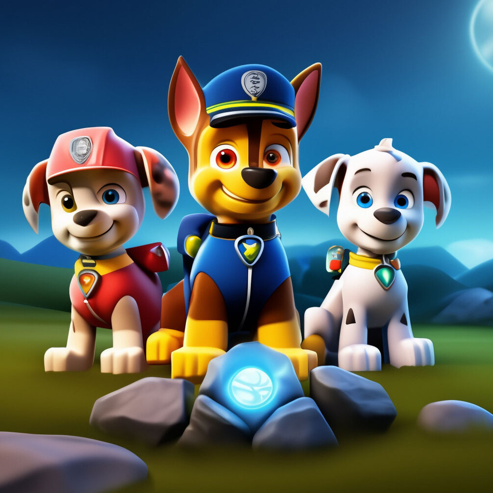 The PAW Patrol sets out on an adventure to find the legendary Moonstone during the Super Moon event in Adventure Bay. Ryder and his team split up to cover more ground, using Skye's aerial view, Rocky's detector, and Chase's ground search. Despite initial doubt, they discover the glowing Moonstone protected by an owl, which they calm with their good intentions. The team realizes the stone's power is waning and swiftly places it atop the Lookout tower to absorb the moon's rays. The Moonstone's glow brings the community together, and it becomes a symbol of unity, hope, and the PAW Patrol's bravery. The story ends as a bedtime tale, highlighting the power of teamwork and the excitement of solving mysteries.